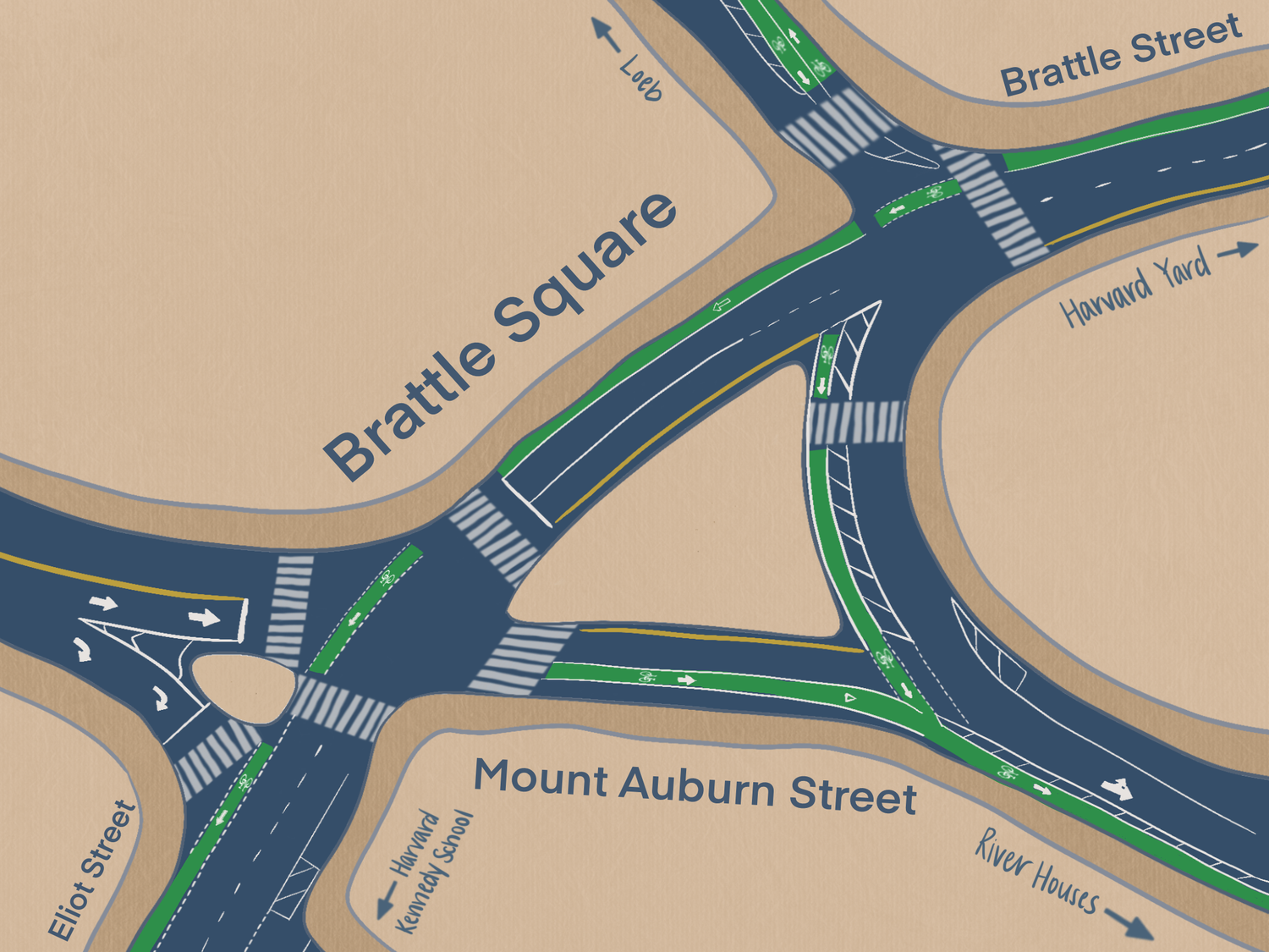 To better understand how traffic infrastructure impacts cyclist safety, here’s a look at three key intersections near Harvard Square.