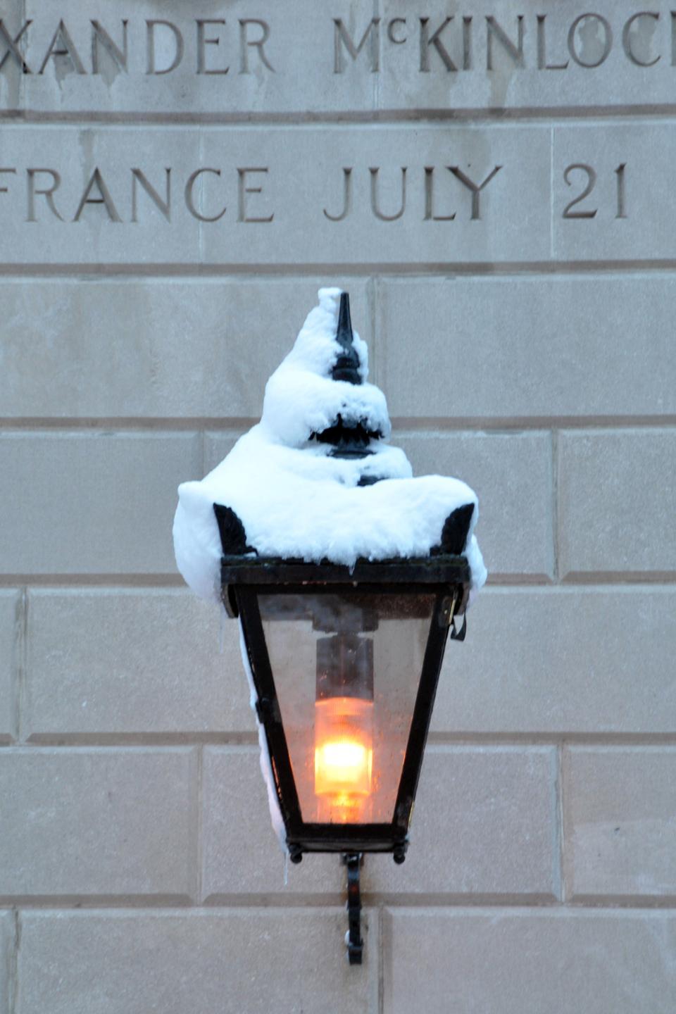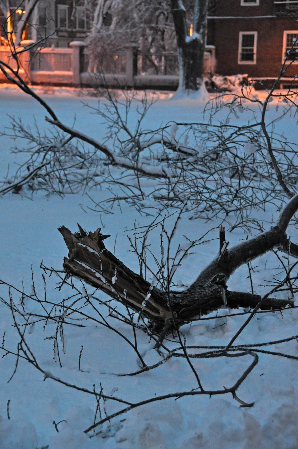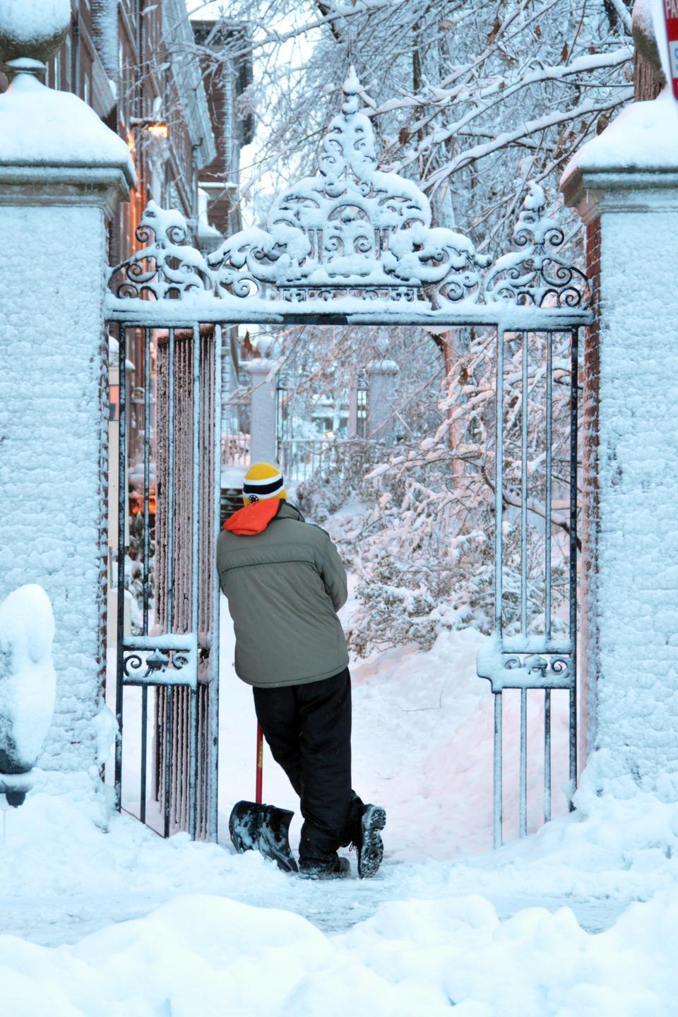 Blizzard conditions Wednesday led to the accumulation of over a foot of snow in Cambridge.